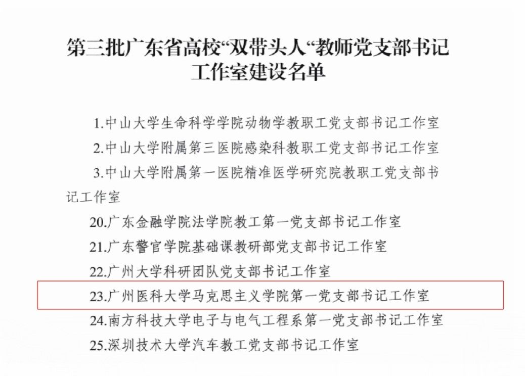 近日,中共广东省委教育工作委员会公布了第三批广东省高校“双带头人”教师党支部书记工作室培育名单,我校tyc234cc太阳成集团第一党支部书记工作室成功入选全省第三批高校“双带头人”教师党支部书记工作室培育建设单位,这是我校首个省级“双带头人”教师党支部书记工作室。